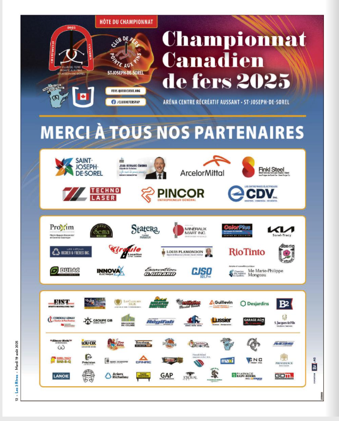 - 19 août 2025 : Championnat canadien de fers 2025 : Merci à nos partenaires