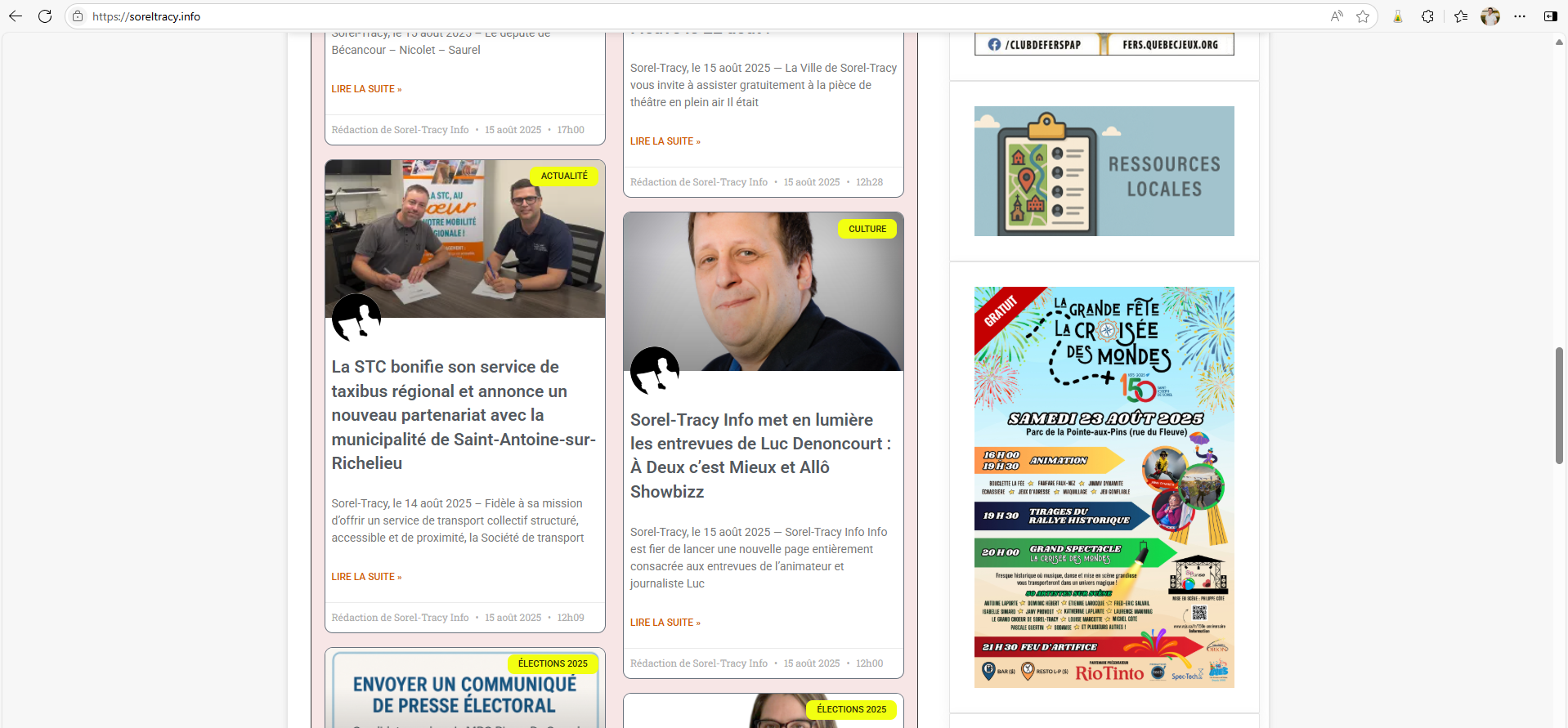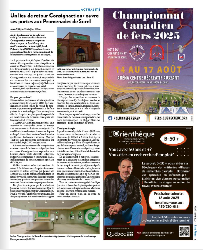 - 19 août 2025 : Publicité sur le site Web de Sorel-Tracy Info
