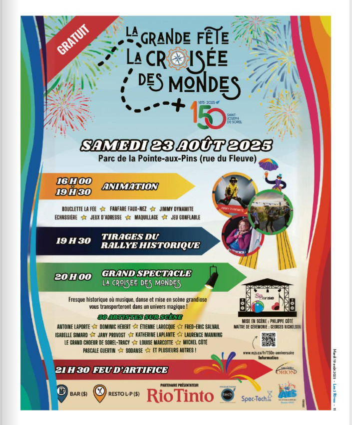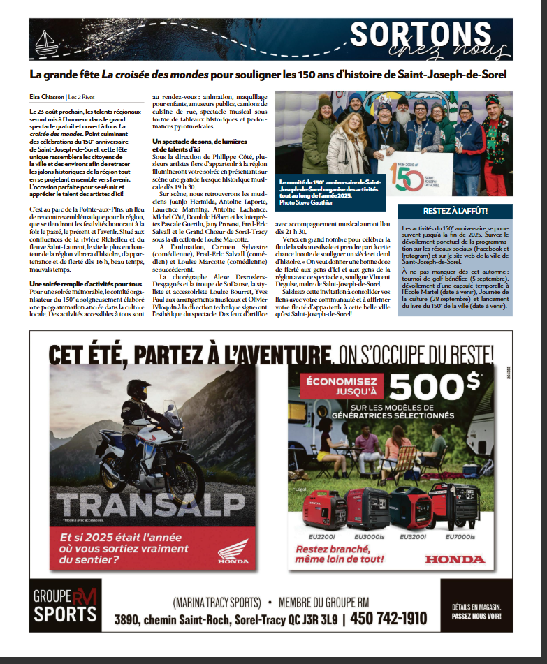 - 14 août 2025 : Saint-Joseph-de-Sorel fête ses 150 ans avec « La croisée des mondes »
