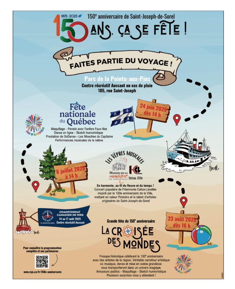 - 2 juillet 2025 : Des événements en juillet pour les fêtes du 150e de Saint-Joseph-de-Sorel