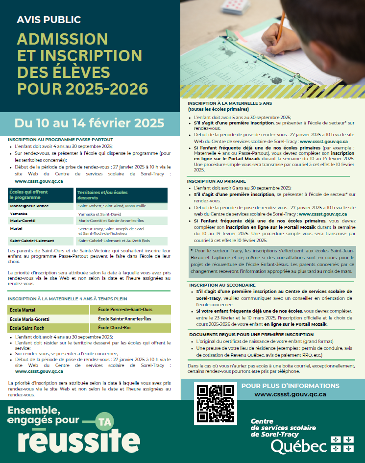 Période d'inscription prolongée - École Martel