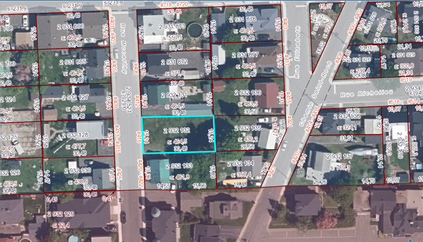 - Lot # 2 932 132 du cadastre du Québec (416, rue Mc Carthy)